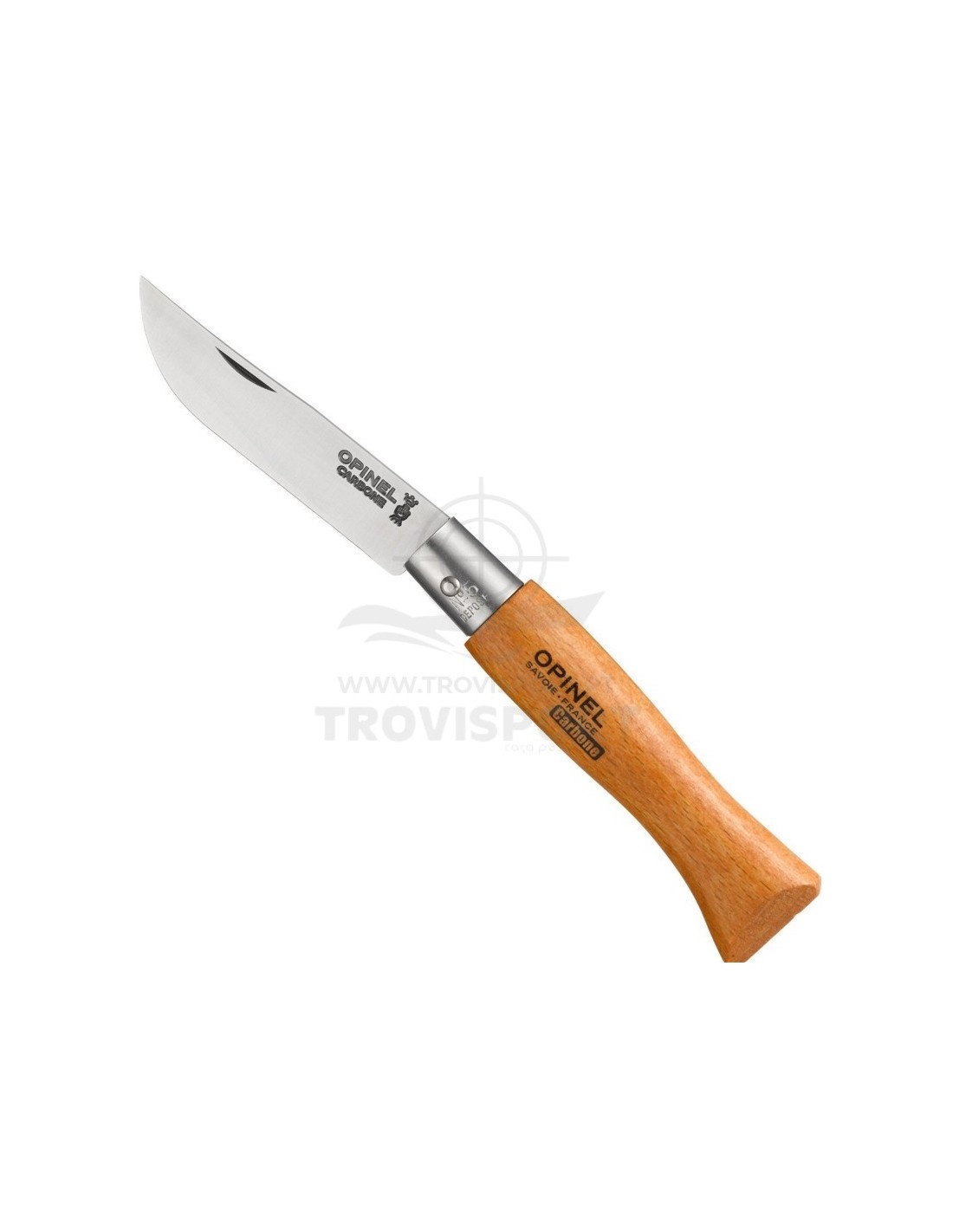 O aço original da Opinel, famoso pelo seu gume com grande poder de corte, fácil de afiar. Sensível à oxidação, a lâmina precisa de uma manutenção cuidada.