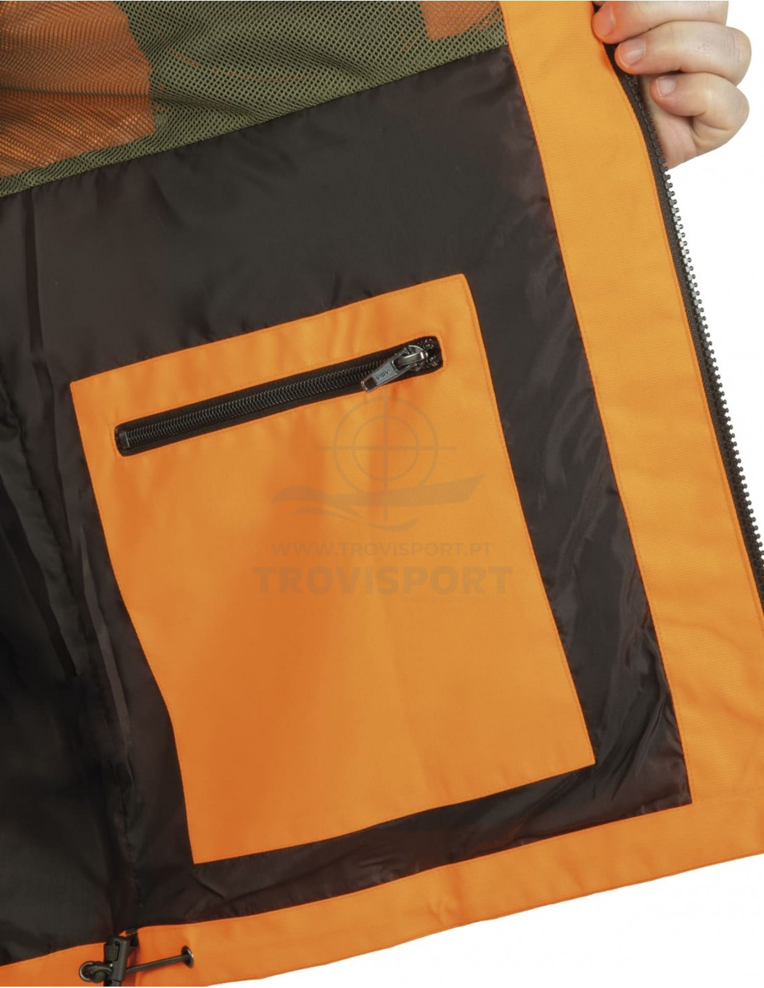Design: Corte desportivo com inserções em laranja ("Blaze") para grande visibilidade, essencial para a caça ativa em grupo.