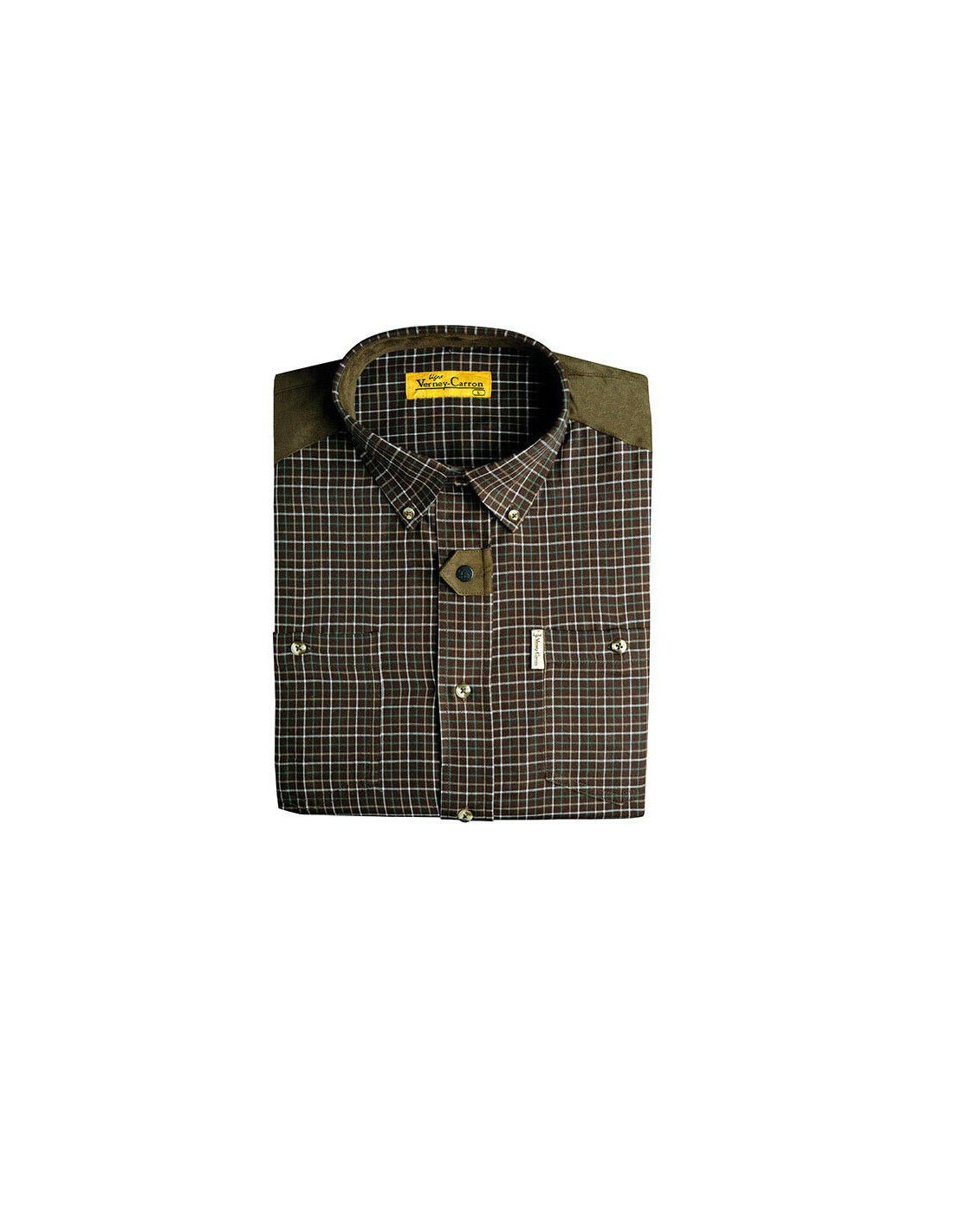 Características: • colarinho pontificado • 65% Poliéster 35% algodão • Quadrados Castanhos/Verdes • 1 bolso no peito• Interior da gola e punhos em contraste material.