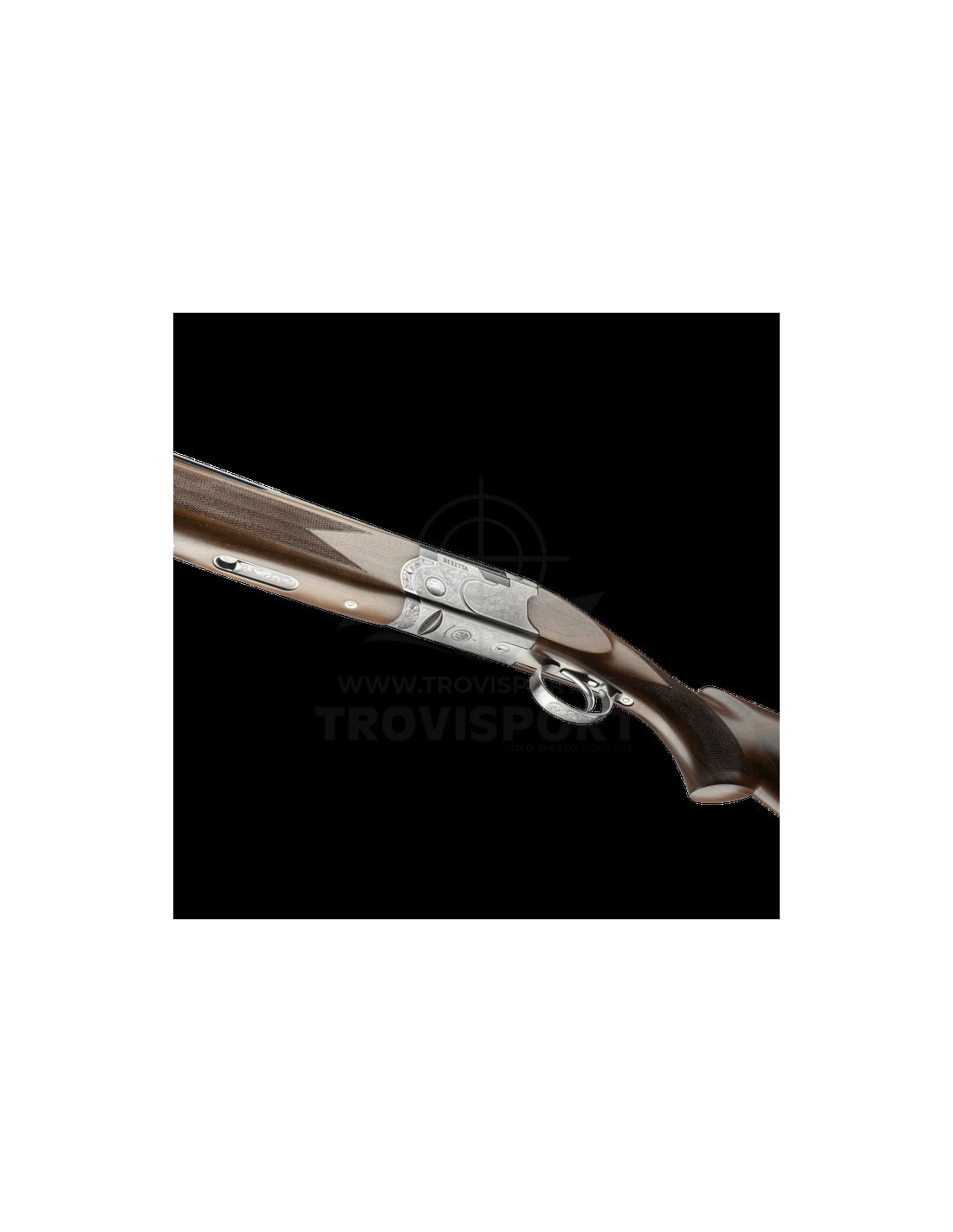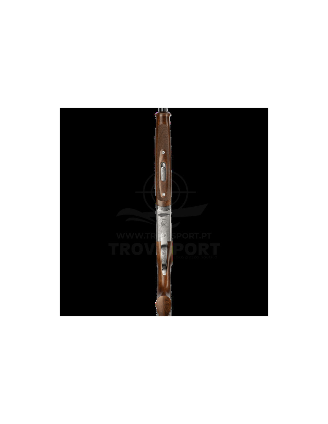 As gravações são criadas com a moderna tecnologia Beretta, um laser de 5 eixos capaz de gravar superfícies arredondadas, mantendo a perfeita continuidade do design. O tema floral, criado pelos Mestres Gravadores da Beretta, cobre agora perfeitamente as superfícies metálicas e estende-se pela primeira vez à cauda da caixa basculante, embelezando os pinos da dobradiça. O fundo com microlinhas aumenta a profundidade da cena.